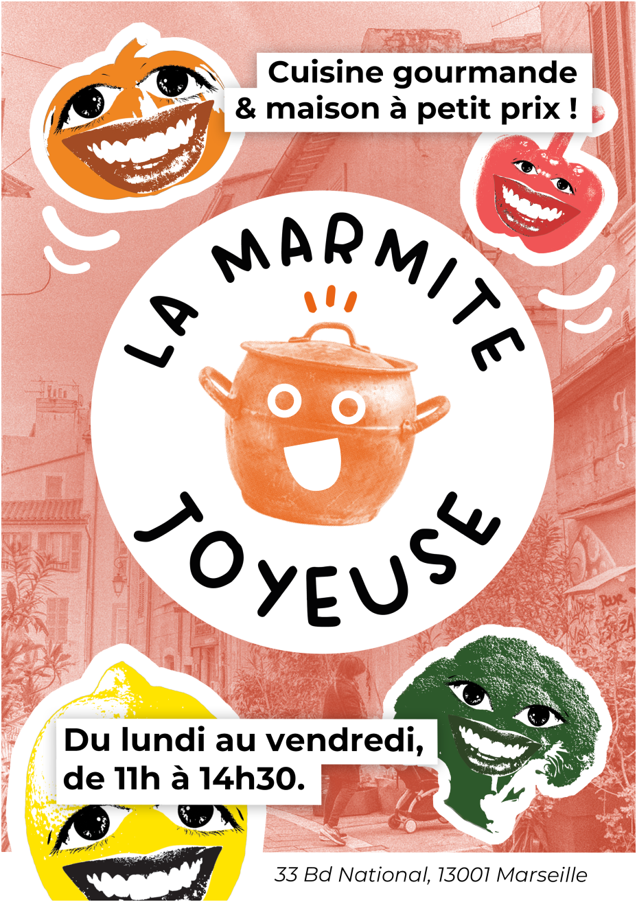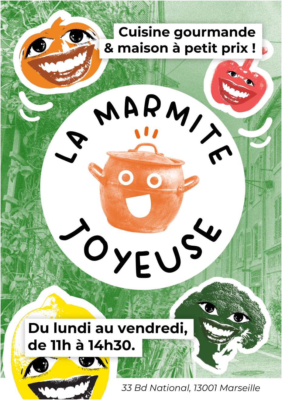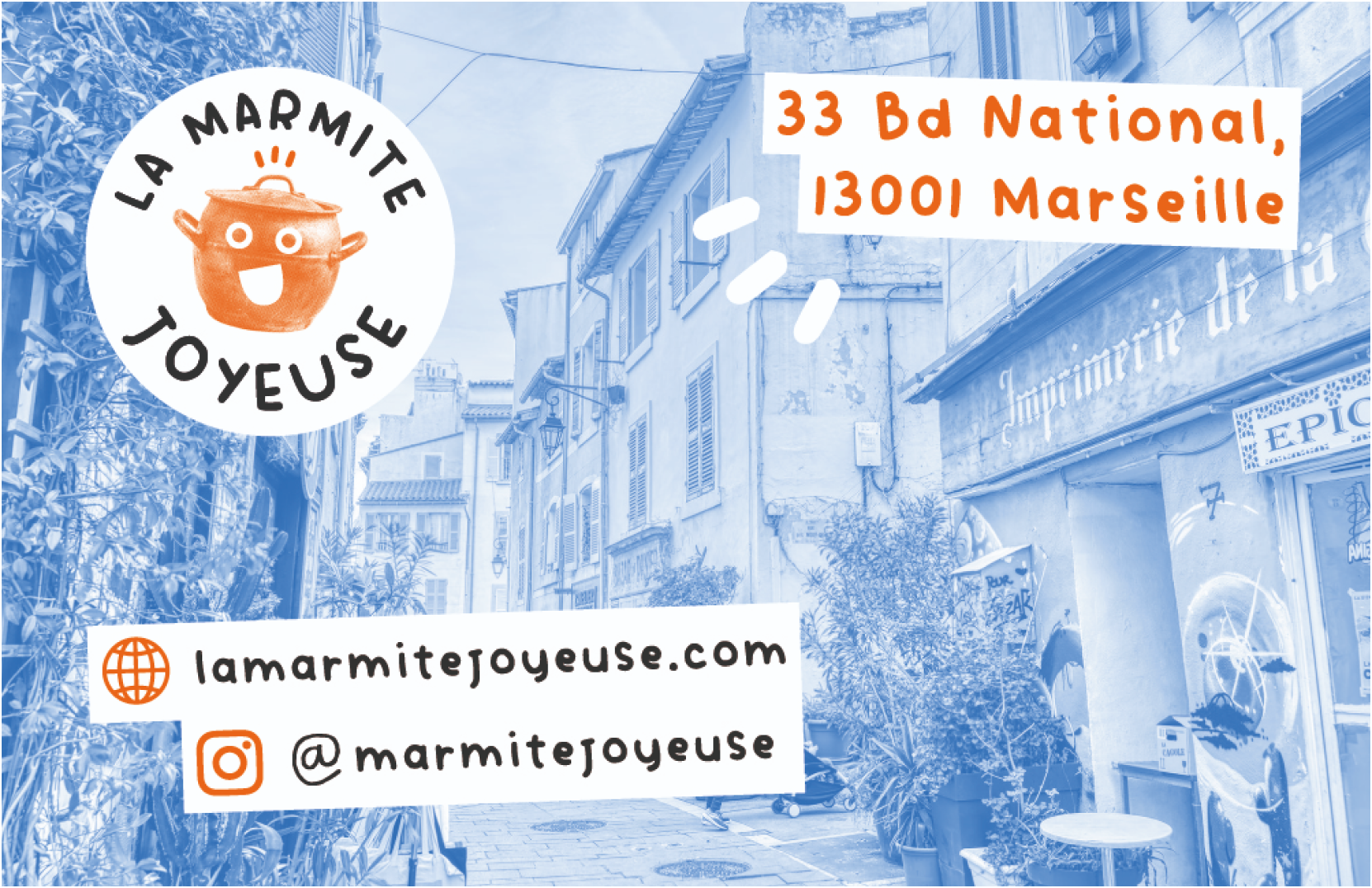Dans le cadre du projet “Simplicité !”, j’ai conçu l’identité visuelle de La Marmite Joyeuse, un restaurant solidaire marseillais qui valorise le partage, la convivialité et l’entraide. Ce travail s’appuie sur les principes d’éco-conception, de sobriété et de participation citoyenne afin de créer une identité accessible, durable et cohérente avec les valeurs du lieu. Les supports, comme la carte de visite à double fonction et les visuels DIY réalisés avec les clients, traduisent une approche responsable du design graphique, centrée sur l’humain et le lien social.