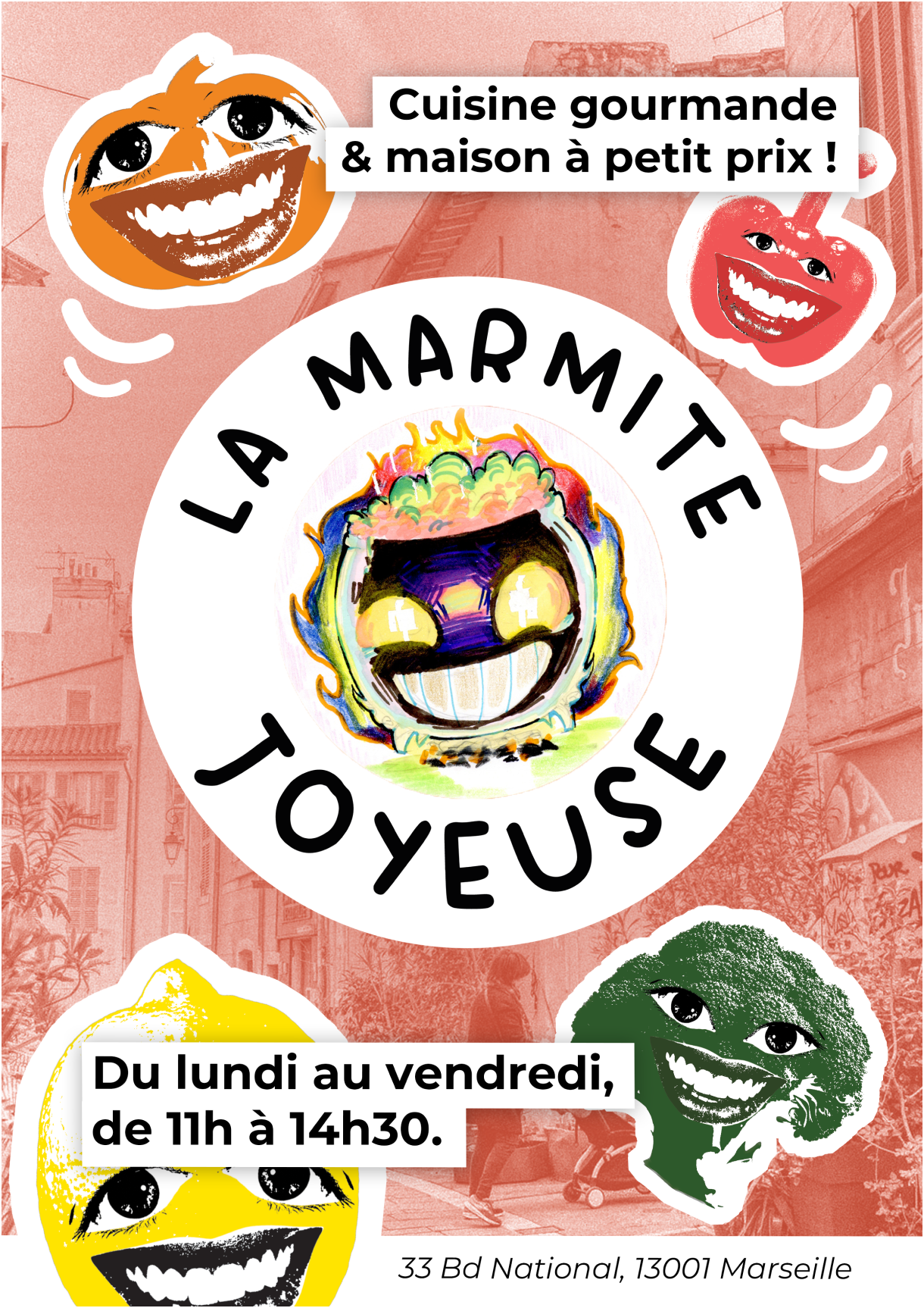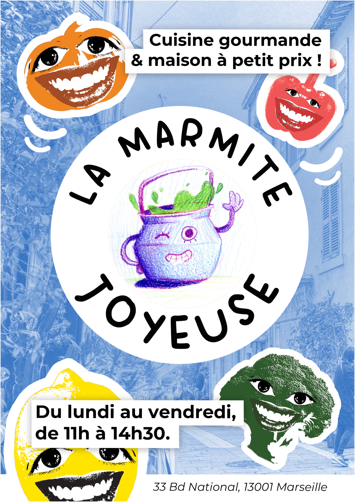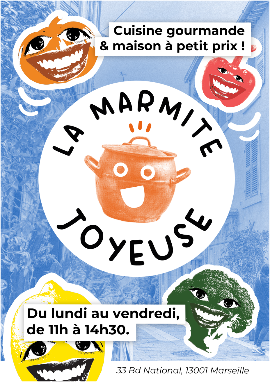 Dans le cadre du projet “Simplicité !”, j’ai conçu l’identité visuelle de La Marmite Joyeuse, un restaurant solidaire marseillais qui valorise le partage, la convivialité et l’entraide. Ce travail s’appuie sur les principes d’éco-conception, de sobriété et de participation citoyenne afin de créer une identité accessible, durable et cohérente avec les valeurs du lieu. Les supports, comme la carte de visite à double fonction et les visuels DIY réalisés avec les clients, traduisent une approche responsable du design graphique, centrée sur l’humain et le lien social.